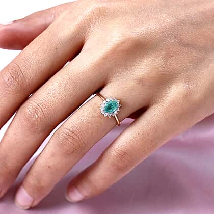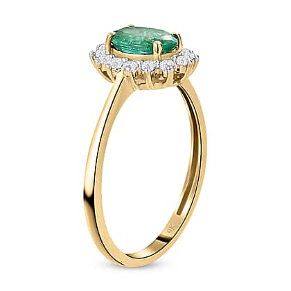 9K Yellow Gold AA Ethiopian Emerald and Diamond I3 GH Ring, 0.84 Ct