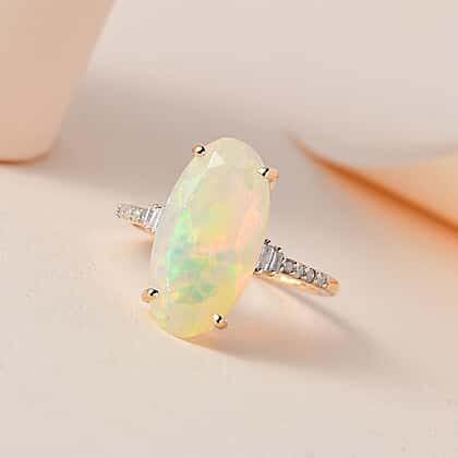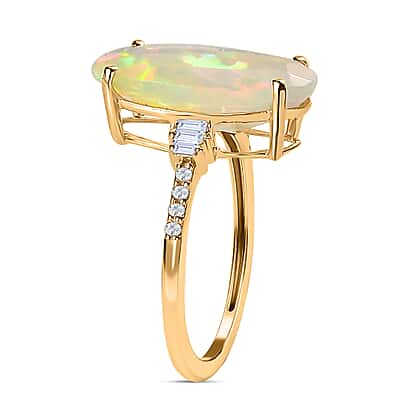 9K Yellow Gold Ethiopian Welo Opal and Diamond Ring 3.03 Ct