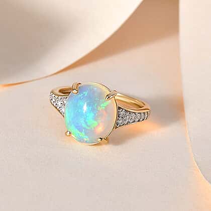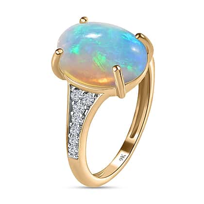 9K Yellow Gold Ethiopian Welo Opal & Moissanite Ring 3.33 Ct