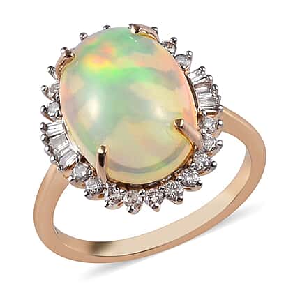 4.65 Ct Ethiopian Welo Opal and Diamond Halo Ring in 9K Yellow Gold I3H
