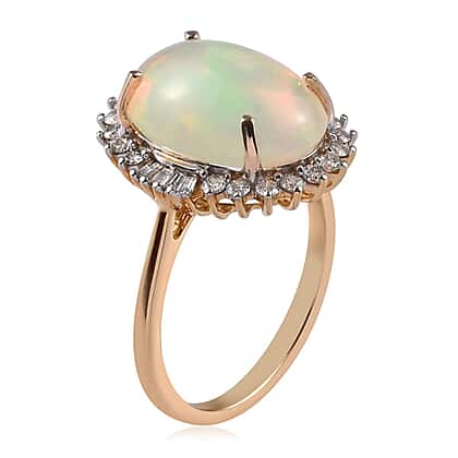 4.65 Ct Ethiopian Welo Opal and Diamond Halo Ring in 9K Yellow Gold I3H