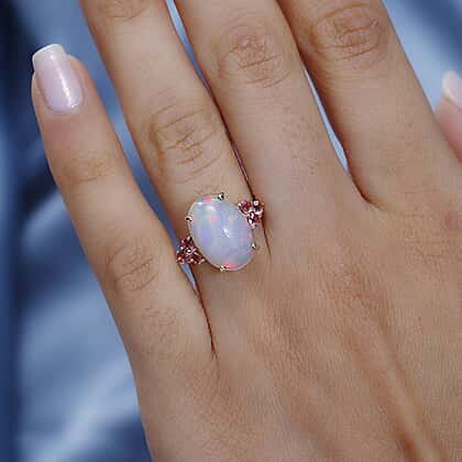 9K Yellow Gold Ethiopian Welo Opal & Pink Tourmaline Ring 4.60 Ct.