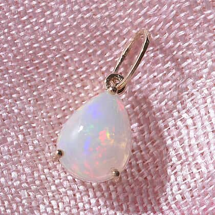 9K Yellow Gold Ethiopian Welo Opal Solitaire Pendant 1.00 Ct.