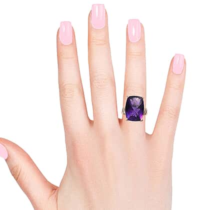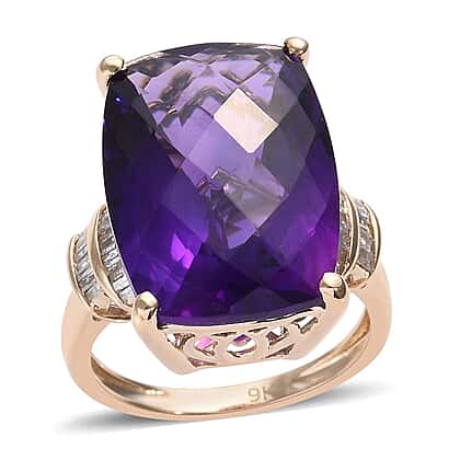 13.25 Ct AAA Zambian Amethyst and Diamond Ring in 9K Gold 3.92 Grams