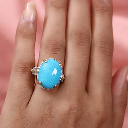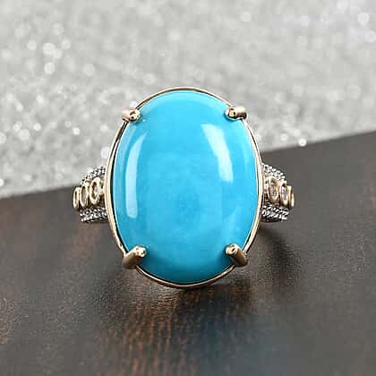 - BRILLIANT DESIGN: This impressive ring features a brilliant design embellished with 20x15mm Arizona sleeping beauty turquoise at the centre with glaring Diamonds on the shank
