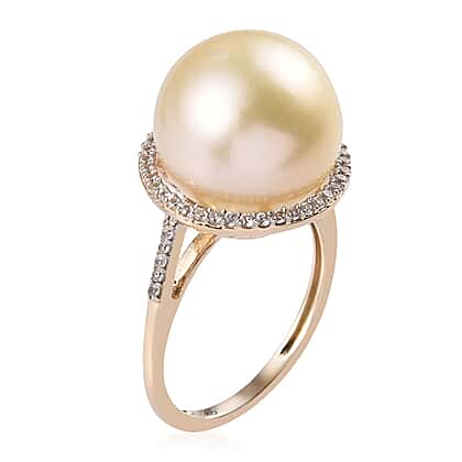 9K Yellow Gold Golden South Sea Pearl and Natural Cambodian Zircon Ring