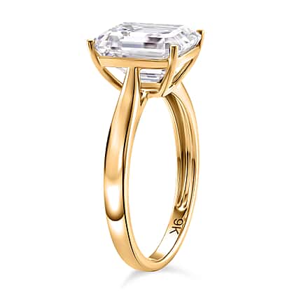 9K Yellow Gold GRA Certified Moissanite D-VVS1 Emerald Cut Solitaire Ring 4.00 Ct.