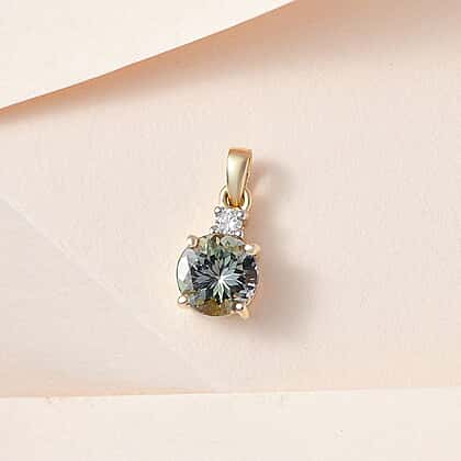 9K Yellow Gold Green Tanzanite and Moissanite Pendant 1.04 Ct.