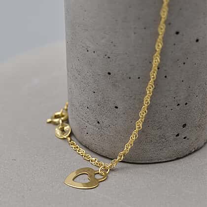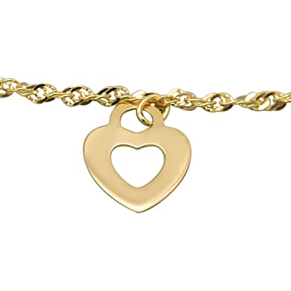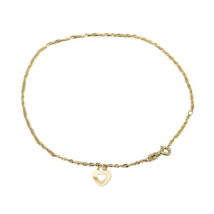 9K Yellow Gold Heart Charm Twist Curb Chain Anklet (Size 9-10) , Gold Wt. 1.20 Gms