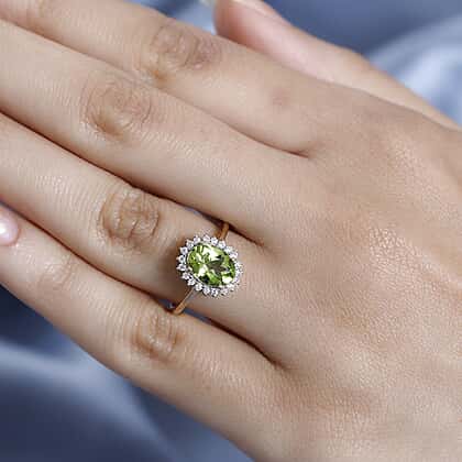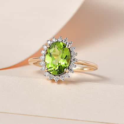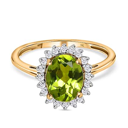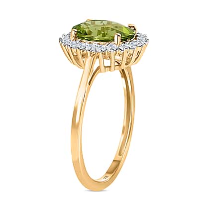 9K Yellow Gold Hebei Peridot & Moissanite Halo Ring 1.90 Ct