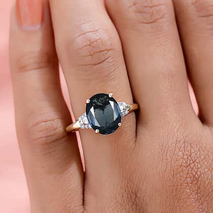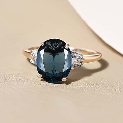 9K Yellow Gold Indigo Kyanite and Diamond Ring 4.39 Ct.