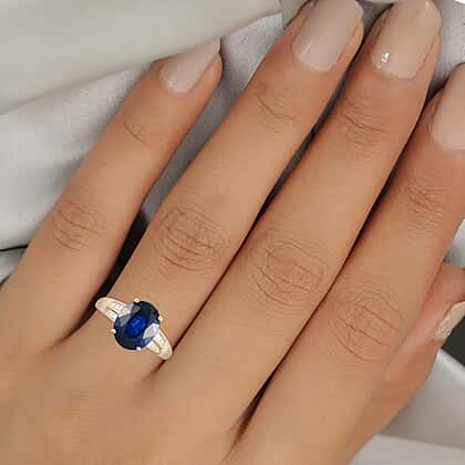 - GEMSTONE DETAILS: An oval faceted cut Kashmir Kyanite and baguette faceted cut Diamonds has been studded onto this ring through prongs and bar setting