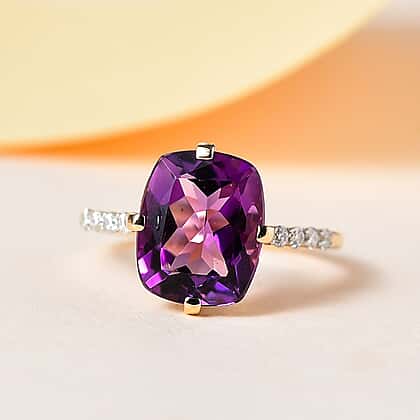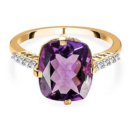 9K Yellow Gold Mashamba Amethyst and Moissanite Solitaire Ring 3.86 Ct.
