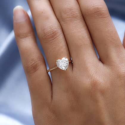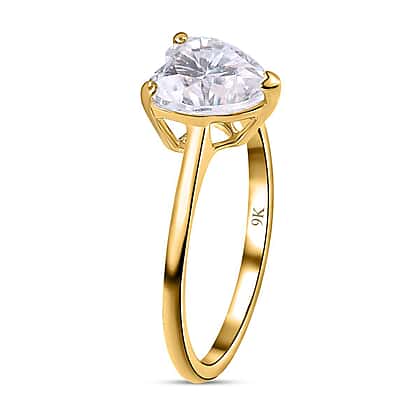 9K Yellow Gold Moissanite Heart Ring 1.78 Ct