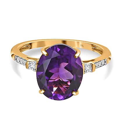 3.68 Ct AA Moroccan Amethyst and Diamond Solitaire Ring in 9K Yellow Gold
