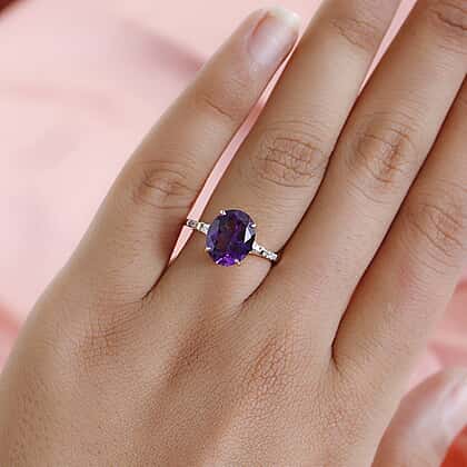 - The oval amethyst is set in the heart of the ring exhibiting purple colour sparkle and shine