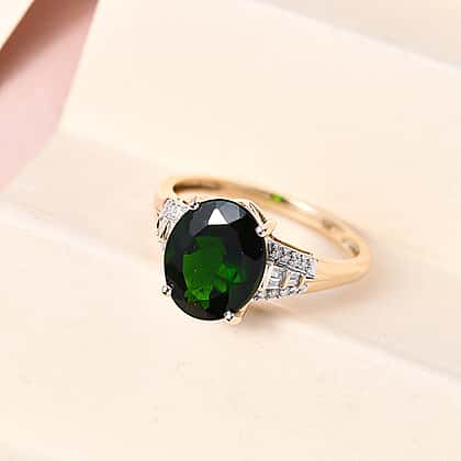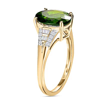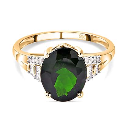 9K Yellow Gold Natural Chrome Diopside and Diamond Ring 3.61 Ct.