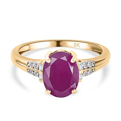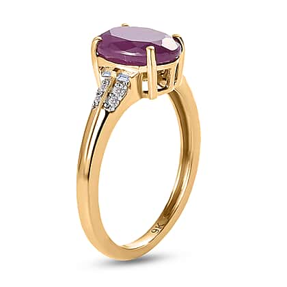 9K Yellow Gold Natural Moroccan Ruby and Diamond Ring 2.64 Ct.
