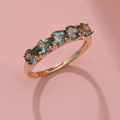 Also known as bi-coloured or polychrome sapphires, Parti sapphires boast two or three colour variations. Exhibiting vibrant tones of green, blue, and yellow, the gemstones are as prized as sapphires. This natural parti sapphire five-stone ring features beautiful blue sapphires in 1.50 Carat studded in sparkling 9K yellow gold. Each stone in the five-stone ring represents five years of a relationship.