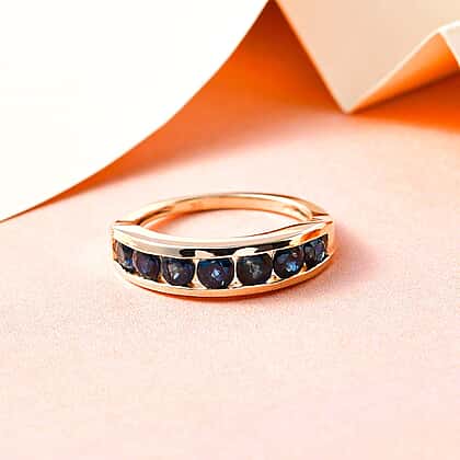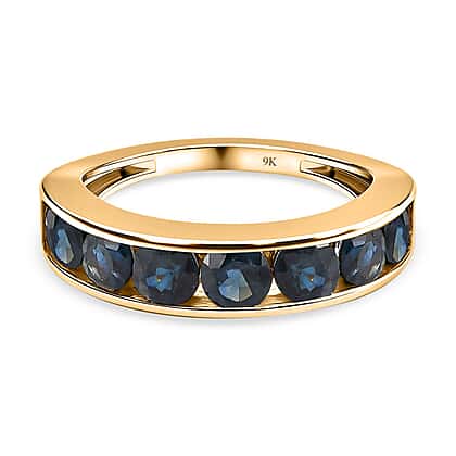 9K Yellow Gold Ocean Teal Sapphire Half Eternity Ring 1.64 Ct