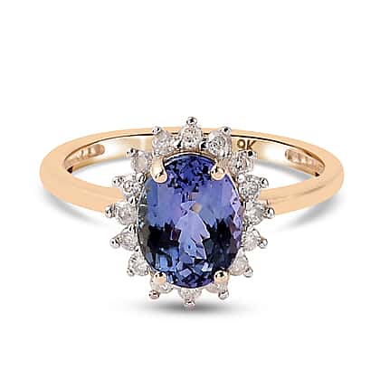 9K Yellow Gold Peacock Tanzanite and Diamond Ring 2.300 Ct.