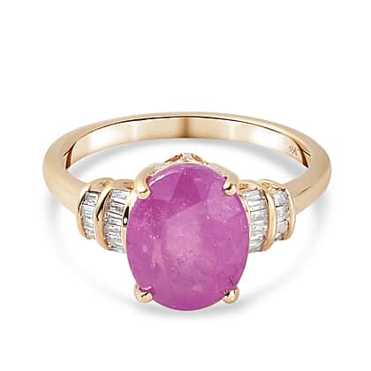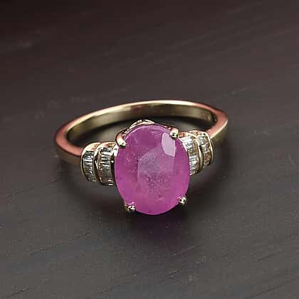 - GESMTONE CUT AND CARAT: The ring features an oval cut Ilakaka Pink Sapphire in a prong setting. Its faceted surface makes it shiny. The baguette cut diamonds are set on the shoulders of the ring in a channel setting. The gemstones offer a weight of 3.81Ct to it
