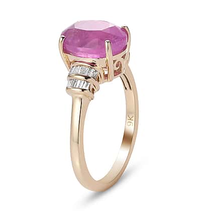 3.81 Ct Ilakaka Pink Sapphire and Diamond Ring in 9K Yellow Gold