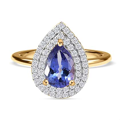 9K Yellow Gold Premium AA Tanzanite and Moissanite Ring 1.85 Ct.
