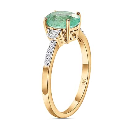 9K Yellow Gold Premium Emerald and Diamond Ring 1.11 Ct.