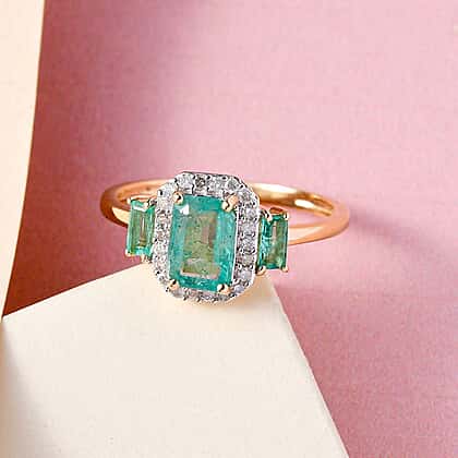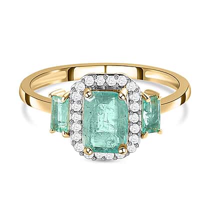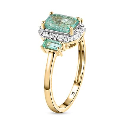 9K Yellow Gold Premium Emerald and Diamond Ring 1.33 Ct.