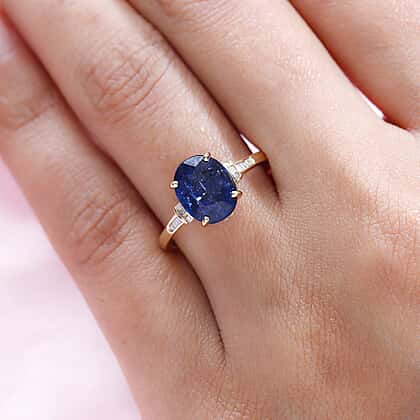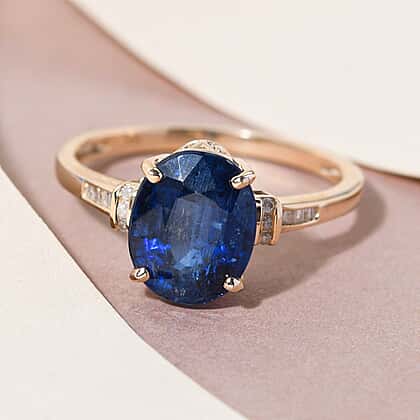 9K Yellow Gold Premium Natural Kashmir Kyanite and Diamond Ring 3.40 Ct.