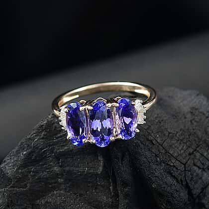 9K Yellow Gold Premium Tanzanite & Diamond Trilogy Ring 2.55 Ct.