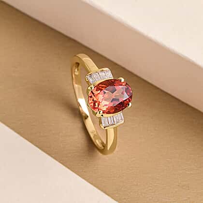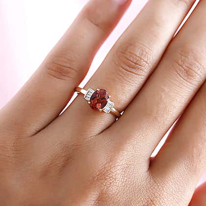 9K Yellow Gold Red Andesine and Diamond Ring 1.29 Ct.