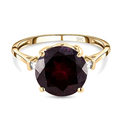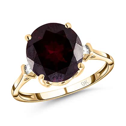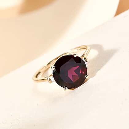 9K Yellow Gold AA Rhodolite Garnet and Diamond I3 GH Ring 4.55 Ct