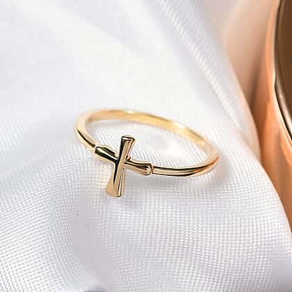 This ring is crafted from solid 9K yellow gold and designed with a gently curved cross at the centre, offering a touch of meaning in a clean, contemporary form. The polished band sits smoothly on the finger, making it comfortable for everyday wear while retaining a sense of quiet elegance. Its minimal profile allows it to be worn on its own or alongside other gold bands for a layered look. The metal has hypoallergenic properties, making it suitable for sensitive skin. A graceful piece with subtle symbolism, suited to both daily wear and thoughtful gifting.