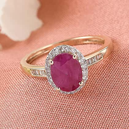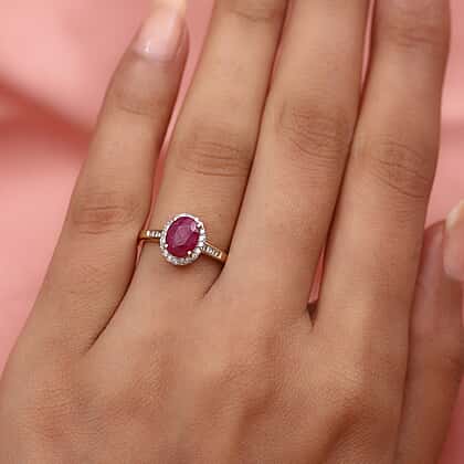 1.81 Ct. Ruby and Diamond Halo Ring in 9K yellow gold