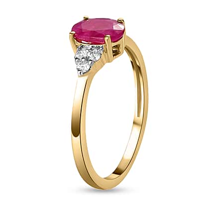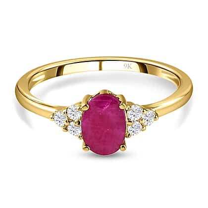 9K Yellow Gold Ruby and Moissanite Ring 1.03 Ct.