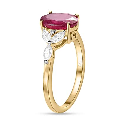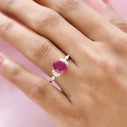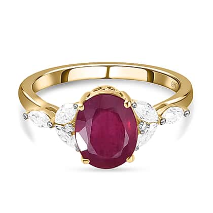 9K Yellow Gold AA Fissure Filled Ruby and Moissanite Classic Ring 3.14 Ct