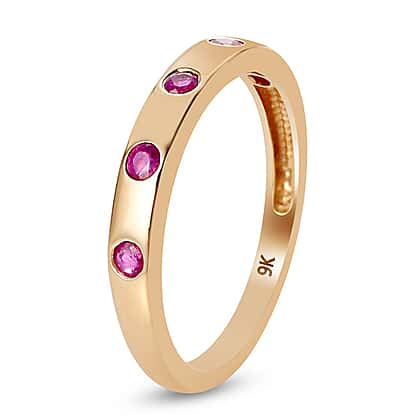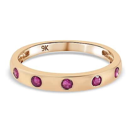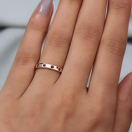 - GEMSTONE CUT AND CARAT: 5 Rubies are cut in round shape and embed on the ring in a flush setting