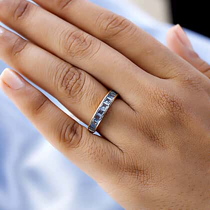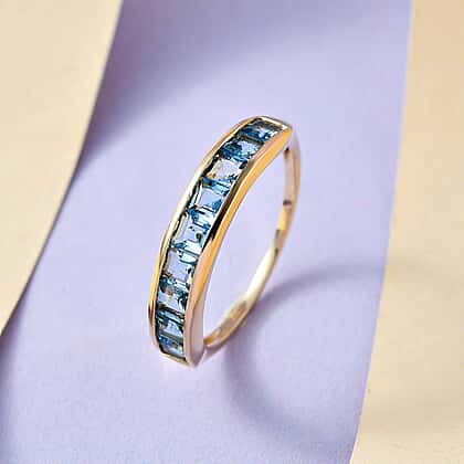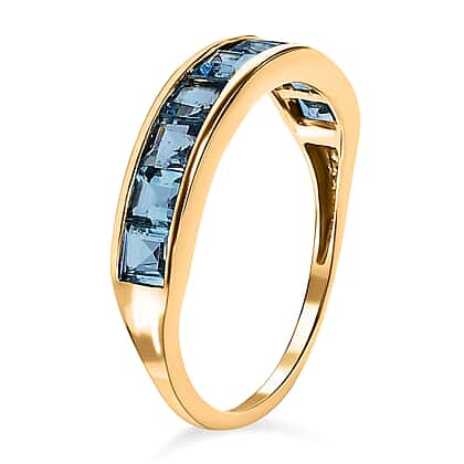 9K Yellow Gold Santamaria Aquamarine Half-Eternity Band Ring 1.17 Ct