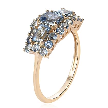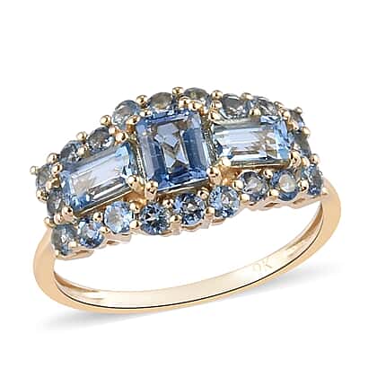 - The shank supporting the three radiant-cut sea blue gemstones is really solid as it is made from the dazzle of 9K yellow gold