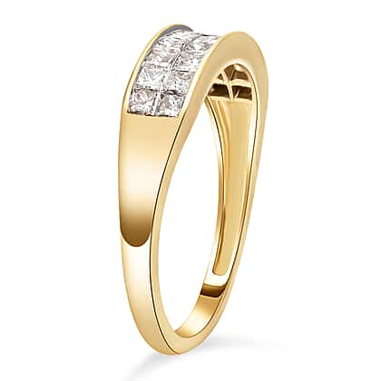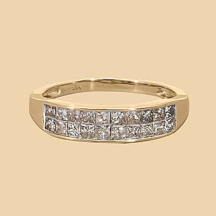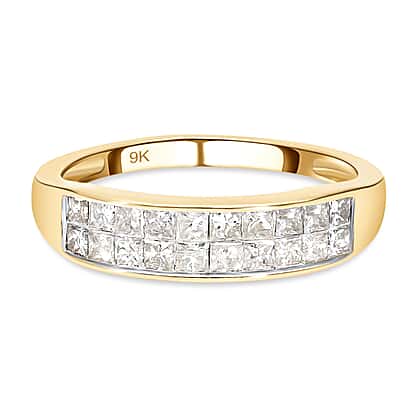 9K Yellow Gold Diamond Double Row Half Eternity Ring 1.00 Ct.