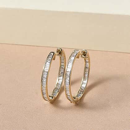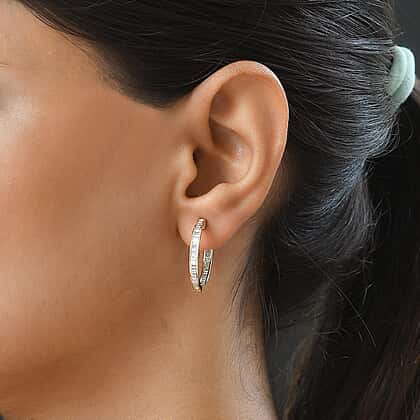 All will covet the glamour these diamond hoop earrings will bring to your look. Crafted in pure 9K yellow gold, the elegant design of these full hoop earrings is done by talented artisans to bring you the taste of ecstasy along with your attire. The baguette faceted cut diamonds are invisibly set inside the shank, exuding the lovely shimmer of the precious SGL-certified diamonds. These earrings will look pretty with any attire you wish to carry for the day.