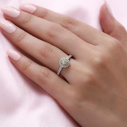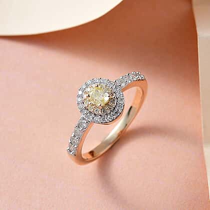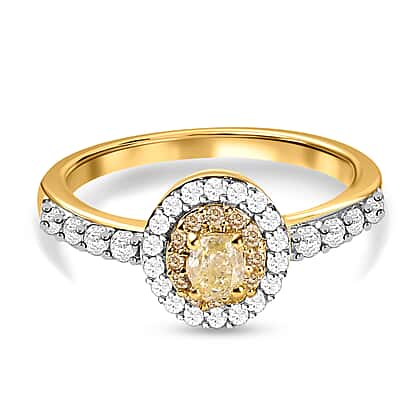 9K Yellow Gold SGL Certified Natural Yellow Diamond & Diamond Ring 0.75 Ct.