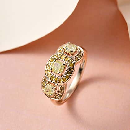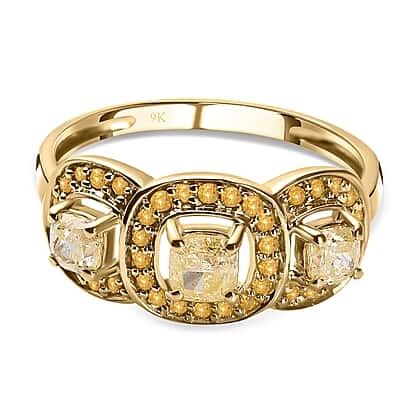 9K Yellow Gold SGL Certified Natural Yellow Diamond I3 Cluster Ring 1.02 Ct