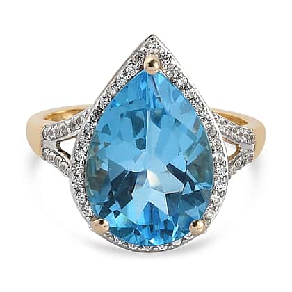 9K Yellow Gold Swiss Blue Topaz and Natural Cambodian Zircon Ring 6.40 Ct.