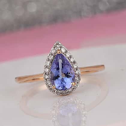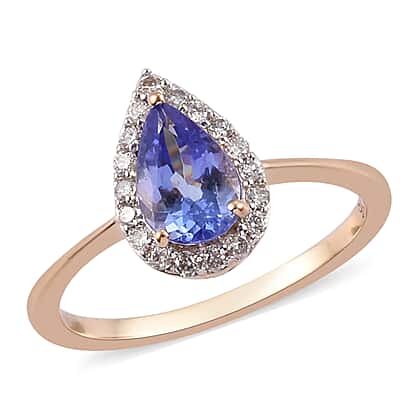 - Perfect tear-drop shape of the tanzanite and neat setting of 18 diamonds around it make the ring a stunner