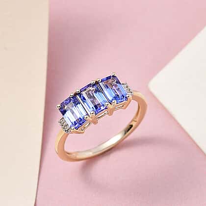 9K Yellow Gold AA Tanzanite and Diamond I3 GH Trilogy Ring 1.72 Ct