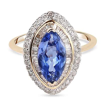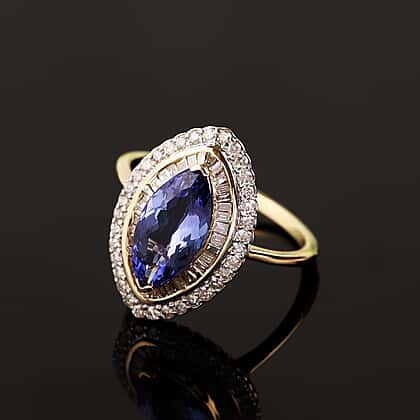 9K Yellow Gold 2.5 Ct. Halo Tanzanite Ring with Diamond