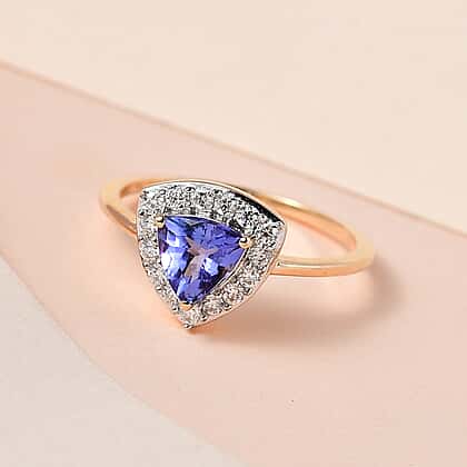 9K Yellow Gold Tanzanite and Moissanite Ring